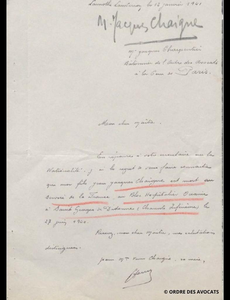 Sa mère informera le bâtonnier, qui n’en avait pas été avisé, du décès de son fils, le 12 janvier 1941.